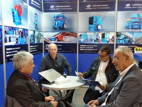 在這次為期6天的展會上,參觀的專業(yè)人士絡繹不絕,我們共發(fā)放產(chǎn)品資料200余套,展會上我公司共接待來訪客戶200余人,在展會宣傳和交流中客戶對我們推出的具有法國基因的C系列顎式破碎機和BP系列反擊式破碎機尤其感興趣,其它給料機、圓錐式破碎機、制砂機等也有較多關注,另因參加此次展會的客商大多數(shù)來自于法國及周邊國家的法語系國家,故我們這次展會也特意邀請我們公司的法國專家路易斯自始至終為我們展會服務,接待來訪很多只講法語的客戶,另外路易斯也邀請了諸多法國的朋友客戶來我們公司的展位參觀交流,通過這次展會,有50多個法國意向客戶,許多客戶都要我們報價,諸多客戶看到洛陽大華和阿特瑞克的合作也很高興,對法國技術+中國洛陽大華制造也很認可。展會還接待了大約15個北非的客戶(突尼斯、阿爾及利亞、摩洛哥和毛利塔利亞)及10多個非洲客戶(多哥、喀麥隆、象牙海岸和塞內加爾)并有詢價,還有一些意大利、塞爾維亞、德國和西班牙客戶等,總之,我們參加這次展會是成功的。