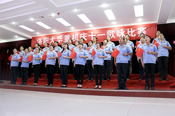 在抗戰(zhàn)勝利70周年紀(jì)念之際,我們又迎來了建國66周年。為慶祝這一特殊的節(jié)日。我洛陽大華重機(jī)公司特舉辦了2015年“慶十一”歌詠比賽。9月30日下午,全體員工歡聚一堂,再次用歌聲唱響旋律,用歌聲喚醒記憶,用歌聲表達(dá)我們對祖國深深的愛意。忠誠于黨,就是要堅(jiān)決聽黨指揮。熱愛人民,就是要全心全意的為人民服務(wù),為建設(shè)富強(qiáng)、民主、文明、和諧的社會主義現(xiàn)代化國家貢獻(xiàn)力量。