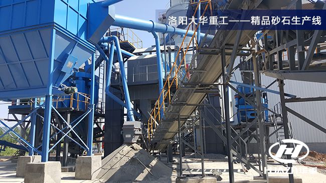 干法制砂的具體加工流程為: 原料→振動給料機(給料)→顎式破碎機(粗碎)→圓錐破/反擊破(中細碎)→振動篩(篩分大骨料)→制砂機(制砂整形)→振動篩(篩分小骨料)→除塵器(除塵)→選粉機(選粉)→成品砂。