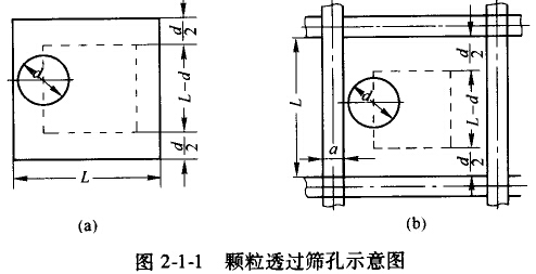 可以設(shè)想有利于顆征透過篩孔的次數(shù),與面積(L—d)²成正比,而顆粒投到篩孔上的次數(shù),與篩孔的面積L²成正比。因此,顆粒透過篩孔的概率,就決定于這兩個(gè)面積的比值。