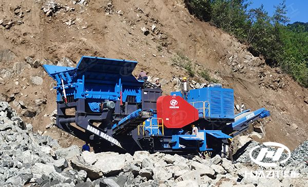 南陽時產450噸橄欖石破碎生產線現(xiàn)場,大型履帶式移動破碎站目前正在生產現(xiàn)場高效平穩(wěn)運行中