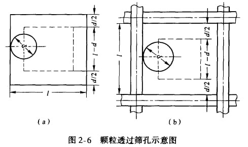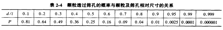 由式2-18可見,顆粒直徑愈接近于篩孔尺寸,P值愈小,當(dāng)d = L時(shí),P = 0。