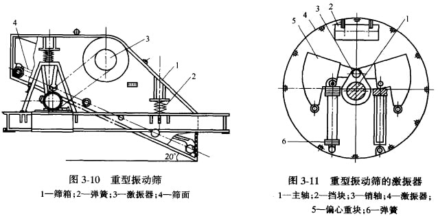 重型振動篩在選礦廠主要用于中碎之前作預(yù)先篩分設(shè)備,代替容易堵塞的固定條篩。此外, 也可作為含泥多的大塊物料的洗礦設(shè)備。