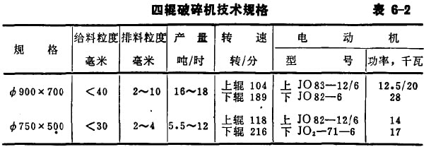 四輥破碎機(jī)技術(shù)規(guī)格見表6-2。