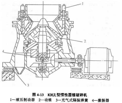 (1)KID型慣性圓錐破碎機的構(gòu)造及工作原理
