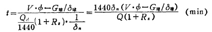 如果磨機(jī)每日的處理量為Qd(t/d),磨機(jī)內(nèi)礦漿的液固比為Rs,設(shè)礦漿的密度為δn(t/m3),則每分鐘通過磨機(jī)的礦漿體積Vn為: