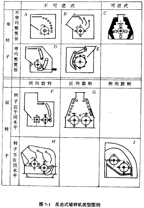 反擊式破碎機(jī)技其結(jié)構(gòu)特征,可分為單轉(zhuǎn)子和雙轉(zhuǎn)子兩種類型,其詳細(xì)類型見圖7-1。