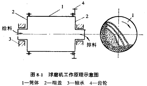 ③管磨機:筒體長度L=(2.5-6)D,如圖8-2(f)所示,在水泥廠被廣泛采用。