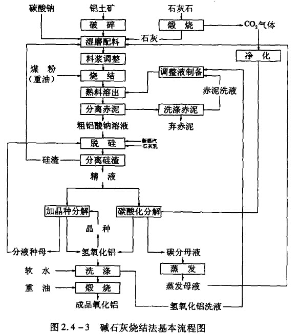 燒結(jié)法流程比較復(fù)雜,能耗大,產(chǎn)品質(zhì)量一般不如拜草法,但燒結(jié)法能有效地處理高硅鋁土礦(如鋁硅比3-5),而且所消耗的是價格較低的碳酸鈉。