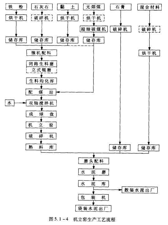 機立窯生產(chǎn)的工藝流程如圖5.1-4所示。