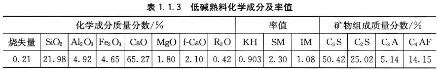 2008年4月17日開始實(shí)施低堿水泥配料方案,通過四個(gè)月的生產(chǎn)實(shí)踐,由于配料方案選擇合理,工藝措施調(diào)整及時(shí)得當(dāng),保證了回轉(zhuǎn)窯系統(tǒng)熱工制度的穩(wěn)定,從而保證了熟料的產(chǎn)質(zhì)量。產(chǎn)量由78.6t/h提高到79.8t/h,且質(zhì)量符合國標(biāo)要求。熟料化學(xué)成分、率值熟料及礦物組成見表1.1.3。