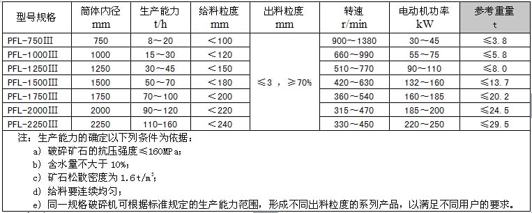 1、PFL-Ⅲ系列立式復合破碎機的性能參數如表1: