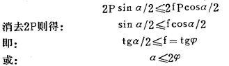 如圖1所示,當?shù)V塊被動顎以P的壓力壓在固定顎板上,則固定顎板的反作用壓力為P1。P和P1除對礦石有破碎作用外,還在礦塊與兩顎板接觸點上引起摩擦力fP和fP1,P力可以分解為水平分力(即破碎礦石的力)和垂直分力(即使礦石向上跳動之力),此垂直分力為Psina。fP也可以分解為水平分力 (即破碎礦石的力)和垂直分力(使礦石向下之力),此垂直分力為fpcosa。而P1的大小為Pcosa和fpsina兩分力之和(因P1為此兩分力的反作用力)因而P1所產(chǎn)生的摩擦力為:f(Pcosа+ fpsina)。要使礦石在破碎腔中不致向上跳動,必須: