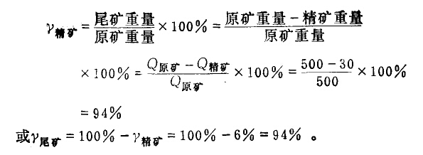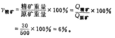 例如:某選礦廠每晝夜處理500t原礦石,獲得30t精礦,則精礦產(chǎn)率為: