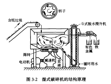 濕式破碎目前主要用于廢紙的再生與利用的前處理,在城市生活垃圾處理中的應(yīng)用還有一定因難,主要是污水的處理。