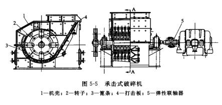 錘式中碎機(jī)有很多形式,但是我國(guó)過去使用的主要是承擊式破碎機(jī)(如圖5-5所示)。