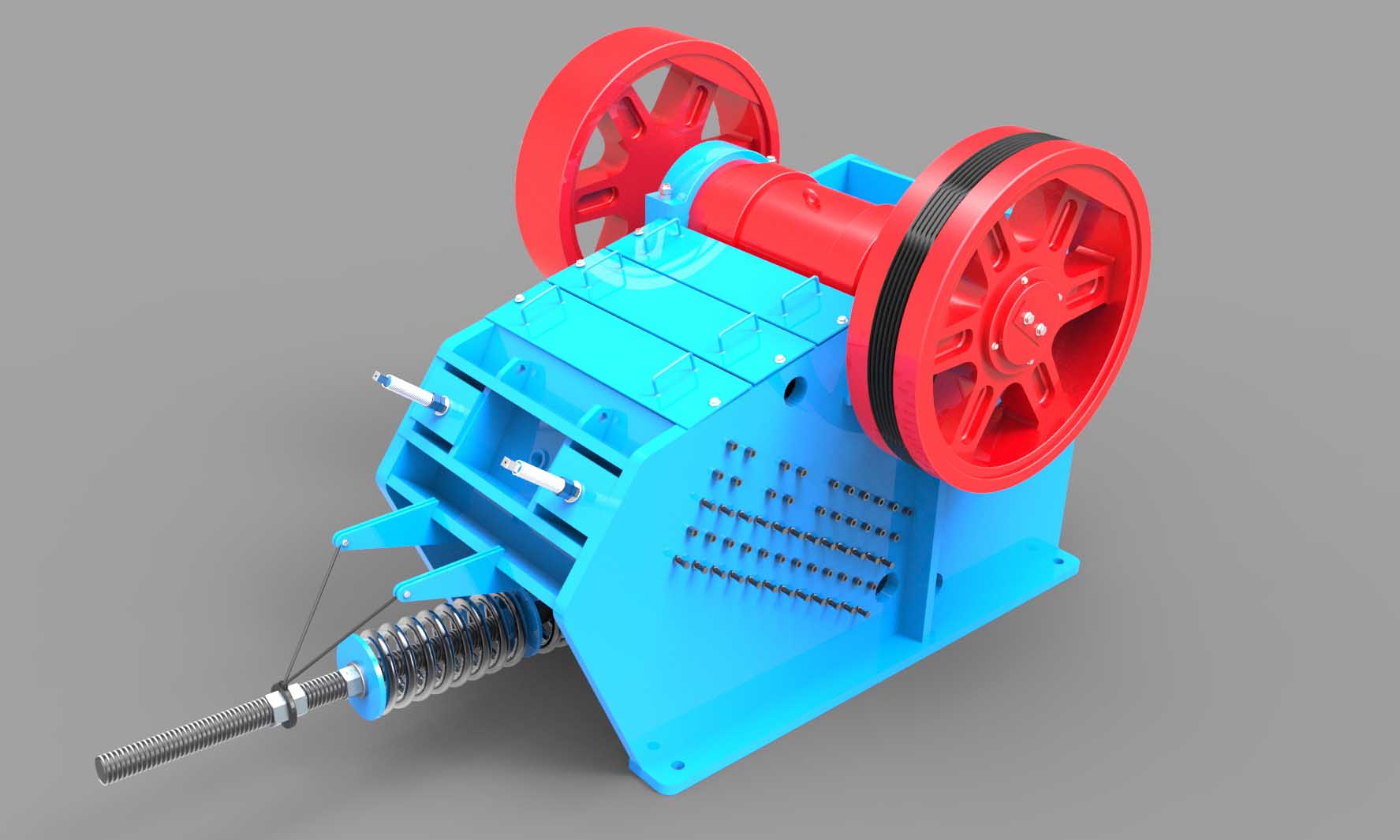 液壓站支撐下的單液壓缸,既可以調(diào)節(jié)排料口大小,又可以卸荷排出不可破碎物,不會(huì)像雙作用缸一樣產(chǎn)生不同步現(xiàn)象,造成動(dòng)顎偏析現(xiàn)象而損壞機(jī)體。PLC自動(dòng)控制系統(tǒng),易操作,安全便捷,實(shí)時(shí)監(jiān)控。