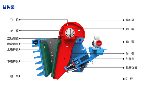 整機(jī)式主軸承箱,結(jié)構(gòu)簡單、堅實可靠、維修容易,方便運輸和安裝。肘板和活動顎板均帶有橫向防偏功能,合理的運動軌跡和配重平衡,降低了動負(fù)荷,主機(jī)振動幅度小、噪聲低,運行平穩(wěn)。