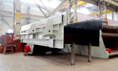 振動(dòng)給料機(jī)采用鋸齒形篦條梯級(jí)布置,不僅具有自掃功能,不易堵料,便于更換和調(diào)整間隙,壽命長(zhǎng),篩分效率高,安裝調(diào)整也非常便捷;兩段棒條組階梯高落差結(jié)構(gòu)設(shè)計(jì),能有效剔除細(xì)料免于重復(fù)破碎,大大降低初段破碎機(jī)負(fù)荷。